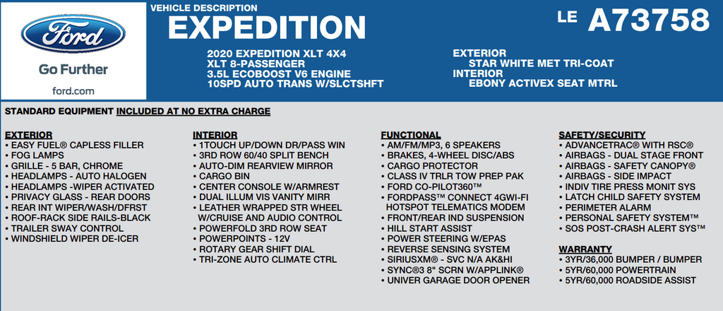 2020 Ford Expedition XLT Star White Metallic Tri-Coat
