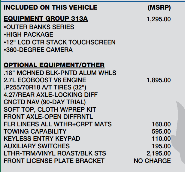 - Equipment Group 313A High Package