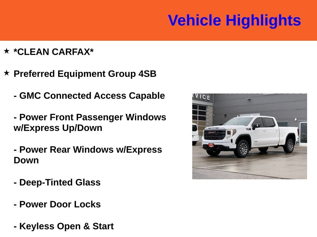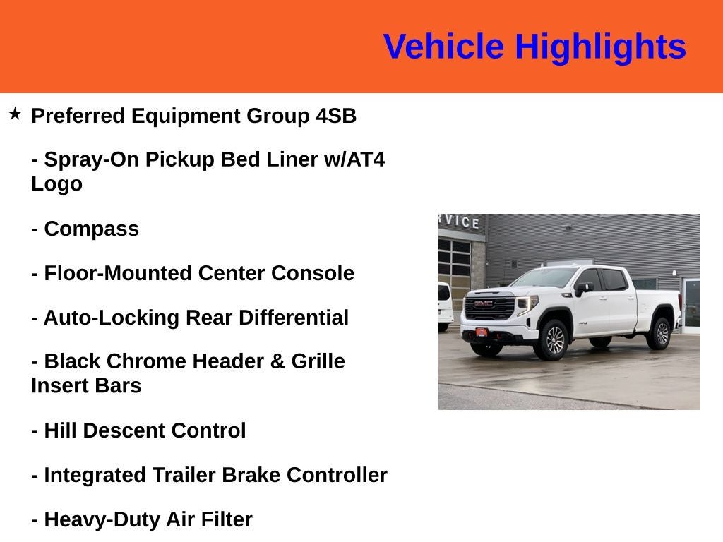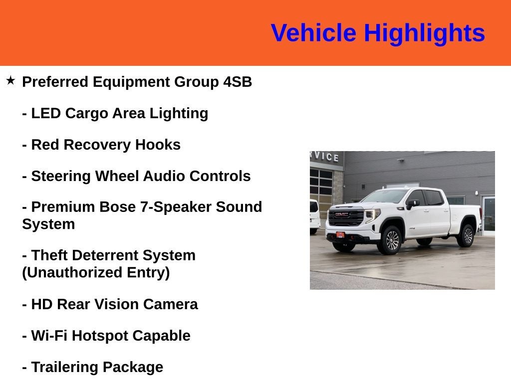 *CLEAN CARFAX*, 10-Speed Automatic, 4WD, Jet Black With Kalahari Accents Leather, 120-Volt Instrument Panel Power Outlet, 2 Charge/Data USB Ports Inside Center Console, 2 Type-C Charge-Only Rear USB Ports, 2 USB Ports, 220 Amp Alternator, Adaptive Cruise Control, AT4 Preferred Package, Auto-Locking Rear Differential, Black Chrome Header & Grille Insert Bars, Color-Keyed Carpeting Floor Covering, Compass, Deep-Tinted Glass, Electric Rear-Window Defogger, Electrical Steering Column Lock, Floor-Mounted Center Console, Front Prem Floor Liners w/Removable Carpet Insert, Front Rainsensing Wipers, GMC Connected Access Capable, HD Rear Vision Camera, HD Surround Vision, Heated 2nd Row Outboard Seats, Heated Driver & Front Outboard Passenger Seating, Heated Steering Wheel, Heavy-Duty Air Filter, Hill Descent Control, Hitch Guidance w/Hitch View, In-Vehicle Trailering App, Integrated Trailer Brake Controller, Keyless Open & Start, LED Cargo Area Lighting, Navigation System, OnStar & GMC Connected Services Capable, Perimeter Lighting, Power Door Locks, Power Front Passenger Windows w/Express Up/Down, Power Front Windows w/Driver Express Up/Down, Power Rake & Telescoping Steering Column, Power Rear Windows w/Express Down, Power Sliding Rear Window w/Rear Defogger, Preferred Equipment Group 4SB, Premium Bose 7-Speaker Sound System, Push Button Start, Rear Cross Traffic Braking, Rear Pedestrian Detection, Rear Wheelhouse Liners, Red Recovery Hooks, Remote Vehicle Starter System, Sierra Safety Plus Package, SiriusXM w/360L, Spray-On Pickup Bed Liner w/AT4 Logo, Steering Wheel Audio Controls, Theft Deterrent System (Unauthorized Entry), Trailer Camera Provisions, Trailer Side Blind Zone Alert, Trailering Package, Ultrasonic Front & Rear Park Assist, Universal Home Remote, Ventilated Driver & Front Passenger Seats, Wi-Fi Hotspot Capable, Wireless Charging, Wireless Phone Projection.