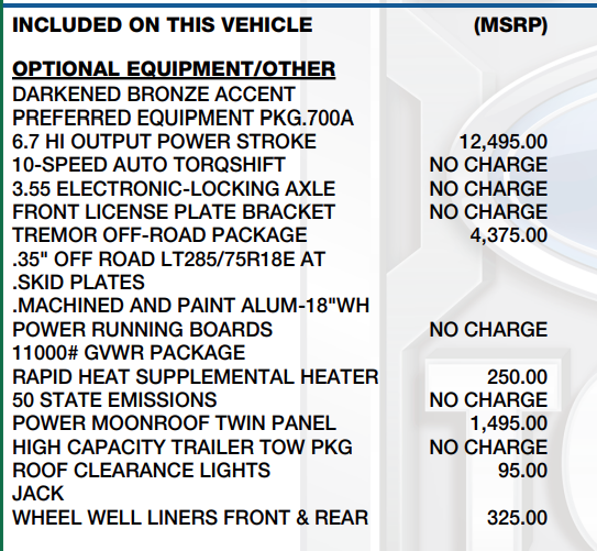 - F-250 >10K GVWR Package